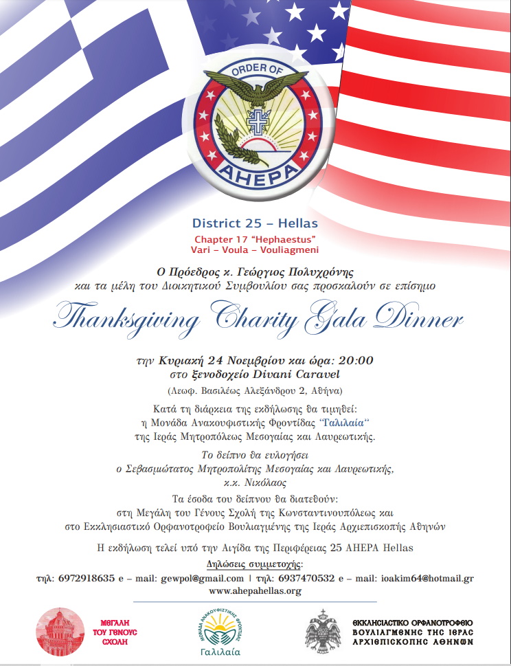 Τα έσοδα της φετινής εκδήλωσης θα διατεθούν για την ενίσχυση του Εκκλησιαστικού Ορφανοτροφείου Βουλιαγμένης & της Μεγάλης του Γένους Σχολής της Κωνσταντινούπολης.