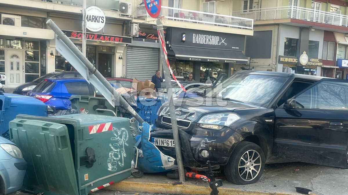 Το αυτοκίνητο ξέφυγε από την πορεία του και έπεσε με δύναμη πάνω σε κάδους απορριμμάτων.