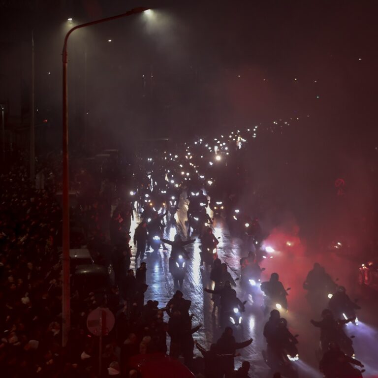 Κάηκε η Τούμπα στον αποχαιρετισμό των 7 φιλάθλων, τη μνήμη των οποίων οι φίλοι τους τίμησαν με καπνογόνα και συνθήματα για την αγαπημένη τους ομάδα