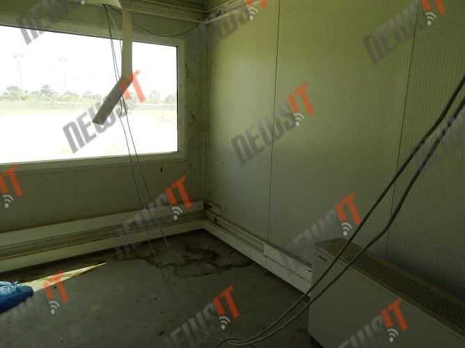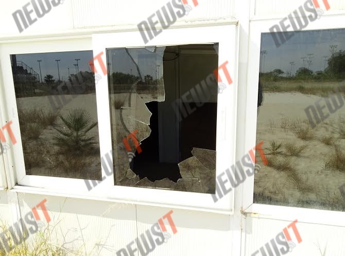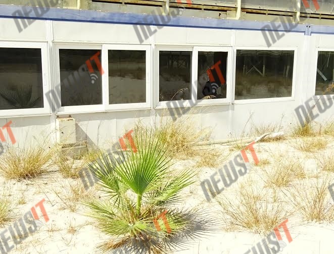 Σπασμένα τζάμια, κομμένα καλώδια και κρεμασμένοι σωλήνες συνθέτουν το σκηνικό της παρακμής στο «φάντασμα» του beach volley το οποίο δεν θυμίζει σε τίποτα το «διαμάντι» του Αθήνα 2004.