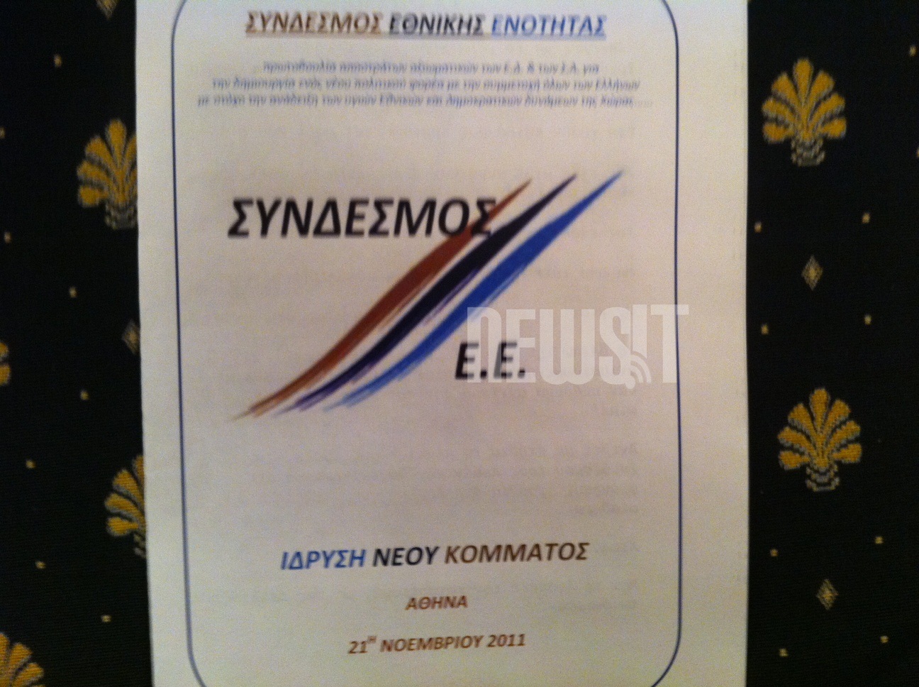 Η τελετή ίδρυσης και η παρουσίαση της κεντρικής πολιτικής θέσης του νέου κόμματος έγινε επισήμως σε ξενοδοχείο του κέντρου της Αθήνας. Το κόμμα ονομάζεται “Σύνδεσμος Εθνικής Ενότητας” και απαρτίζεται από απόστρατους.