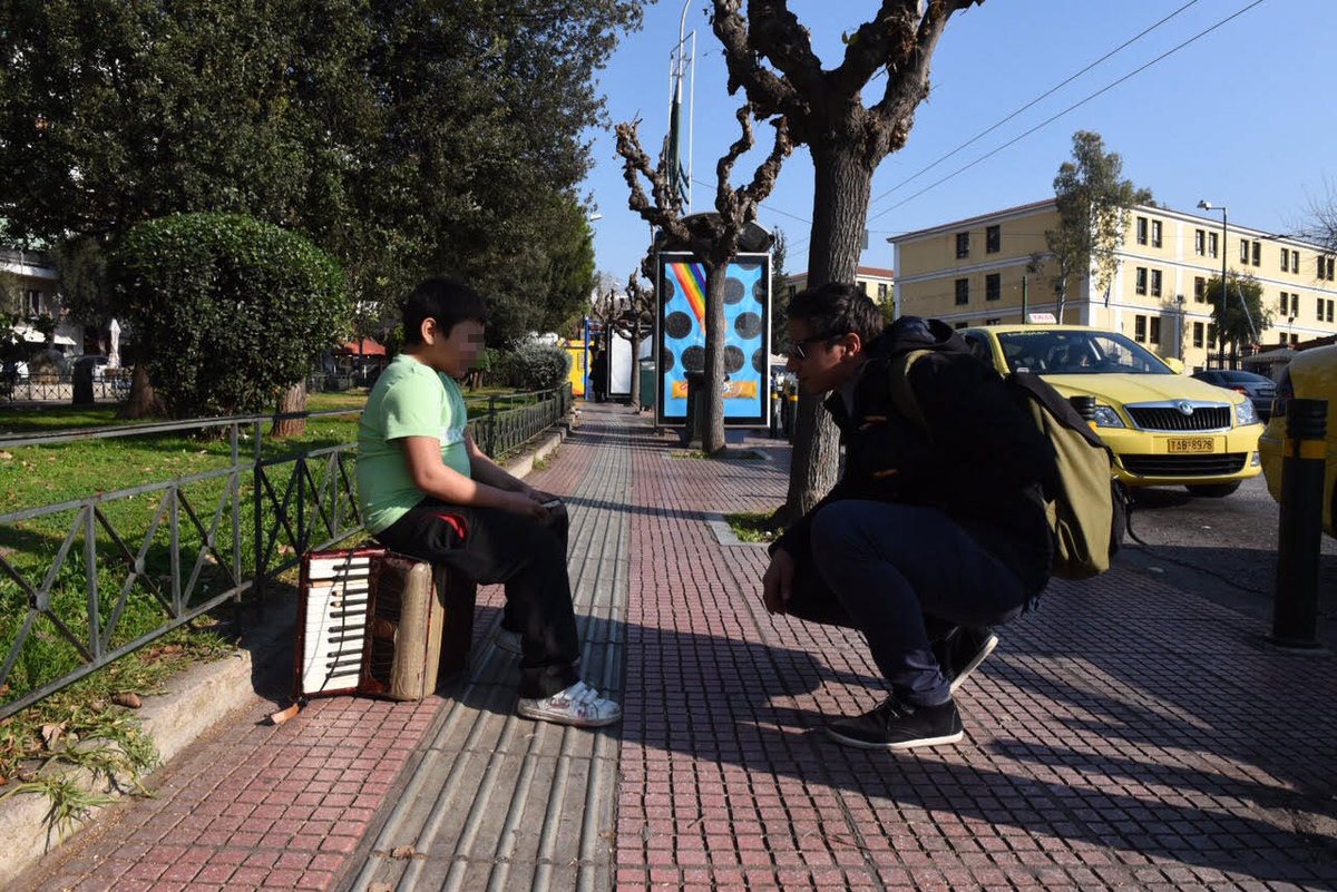 Έφευγα από την Ευελπίδων και στο πεζοδρόμιο είδα ένα μικρό παιδί να κάθεται πάνω στο ακορντεόν του. Πλησίασα για να δω αν θέλει βοήθεια.
