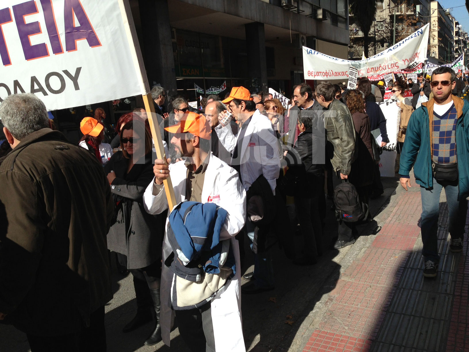 Γιατροί, νοσηλευτές και εργαζόμενοι στα δημόσια νοσοκομεία και το ΕΚΑΒ διαδηλώνουν στην πλατεία Συντάγματος.
