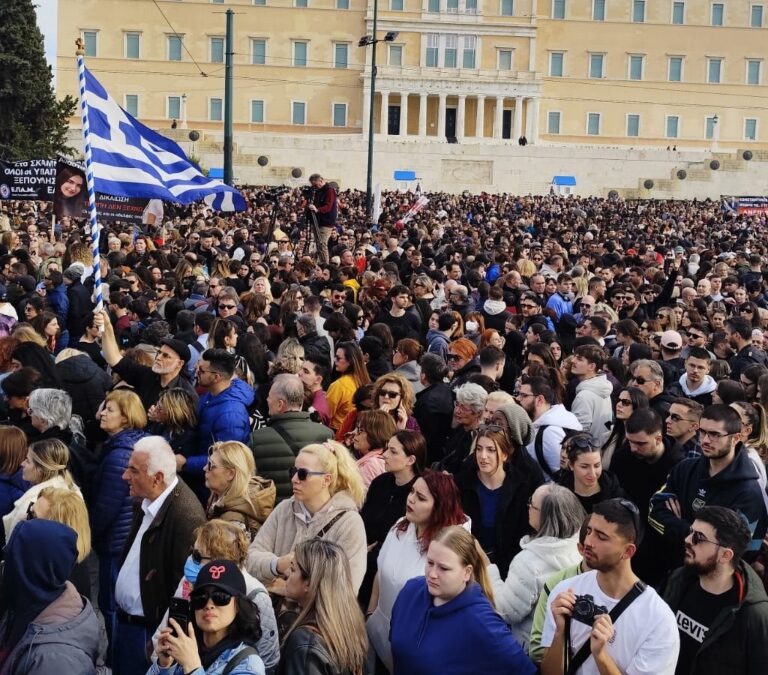 Αν και το ραντεβού για την συγκέντρωση διαμαρτυρίας στο Σύνταγμα, ήταν στις 12:00 το πρωί, από τις 11:00, το κέντρο του πόλης ξεκίνησε να γεμίζει από κόσμο που ήθελαν να σταθούν στο πλευρό των συγγενών των θυμάτων της τραγωδίας των Τεμπών. Μέχρι λίγο πριν τις 14:00, οι διαδηλωτές έφτασαν τους 30.000.