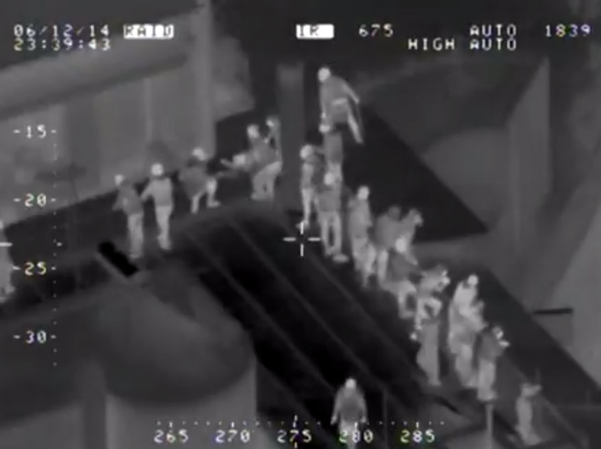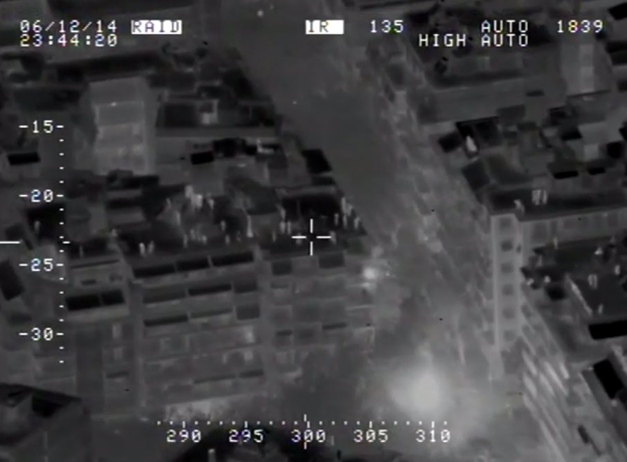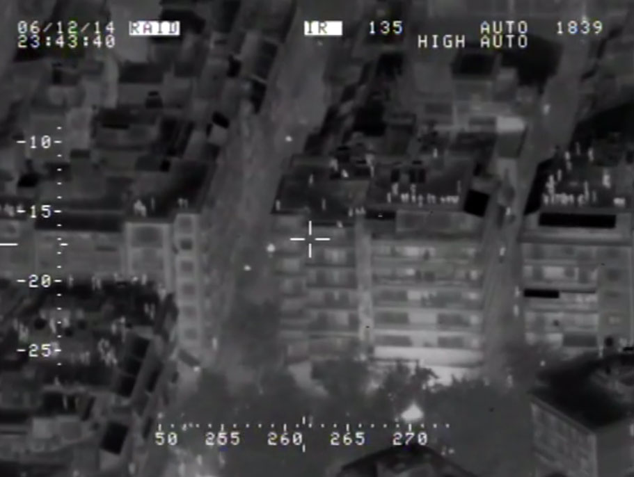 Τα πλάνα που δόθηκαν σήμερα το μεσημέρι στην δημοσιότητα είναι πραγματικά εντυπωσιακά! Το ελικόπτερο της αστυνομίας το βράδυ του Σαββάτου καταγράφει με θεριμική κάμερα όλα όσα συμβαίνουν στα στενά των Εξαρχείων. Δείχνει τους γνωστούς – αγνώστους να είναι σε ταράτσες ταμπουρωμένοι και να πετούν αντικείμενα αλλά και μολότωφ.