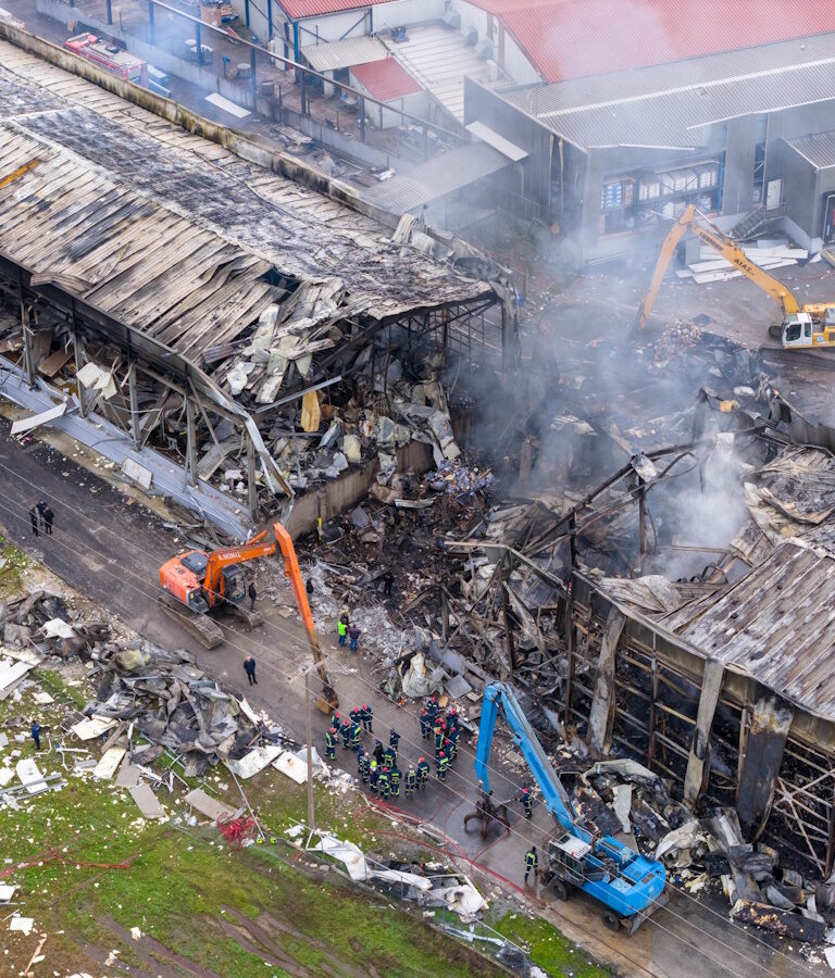 Οι φωτογραφίες που μας φέρνει η Eurokinissi προκαλούν ενόχληση στο στομάχι. Καπνοί συνεχίζουν να βγαίνουν από τη στέγη του εργοστασίου η οποία κατέρρευσε λες και ήταν χάρτινη. Το ωστικό κύμα που προκάλεσε η έκρηξη κατάφερε να ισοπεδώσει τα πάντα, πριν η φωτιά καταστρέψει ό,τι είχε αφήσει.