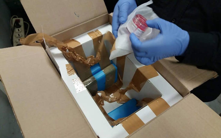 Αυτή είναι η συσκευασία με τους κερατοειδείς χιτώνες προς μεταμόσχευση. Εντοπίστηκαν στις 3-4-2019 στο αεροδρόμιο της Θεσσαλονίκης