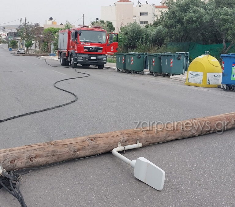 Χανιά: Έπεσαν κολώνες της ΔΕΗ λόγω ισχυρών ανέμων – Πτώσεις δέντρων και στο Ρέθυμνο