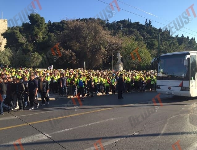 Πριν από λίγη ώρα στο Καλλιμάρμαρο έφτασαν τα πούλμαν για να παραλάβουν τους μεταλλωρύχους, οι οποίοι αποχωρούν από την Αθήνα.