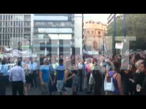 Οι Αστυνομικοί, που δεν φώναξαν κανένα σύνθημα φτάνοντας στο Σύνταγμα, αποδοκιμάστηκαν έντονα από τους Αγανακτισμένους της… “κάτω” πλατείας, με το… γνώστο εις βάρος τους σύνθημα και το “πρώτα μας χτυπάτε, τώρα μας γελάτε;”. Δε συνέβη όμως το ίδιο και με τους Πυροσβέστες, οι οποίοι καταχειροκροτήθηκαν από τον κόσμο.