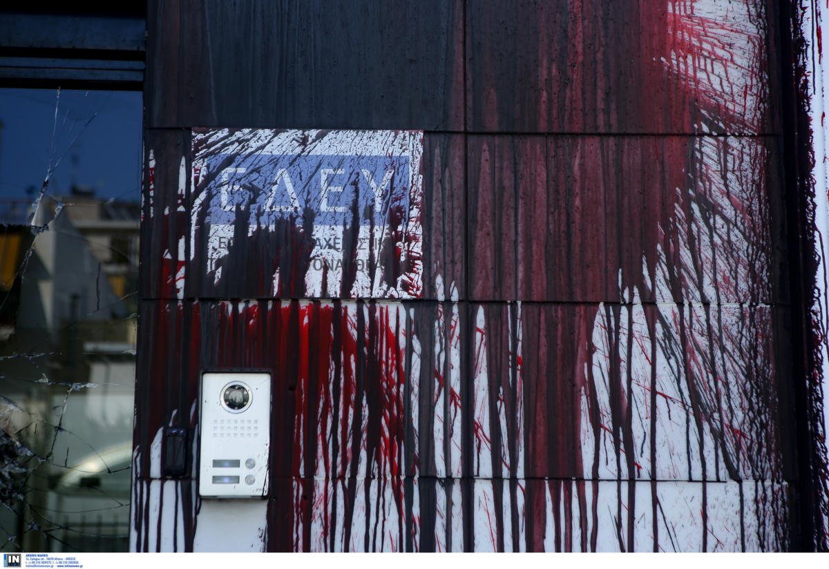 Τα μέλη της οργάνωσης ομάδας τα ξημερώματα πέταξαν μαύρες και κόκκινες μπογιές και έσπασαν με λοστούς και ρόπαλα τις τζαμαρίες.