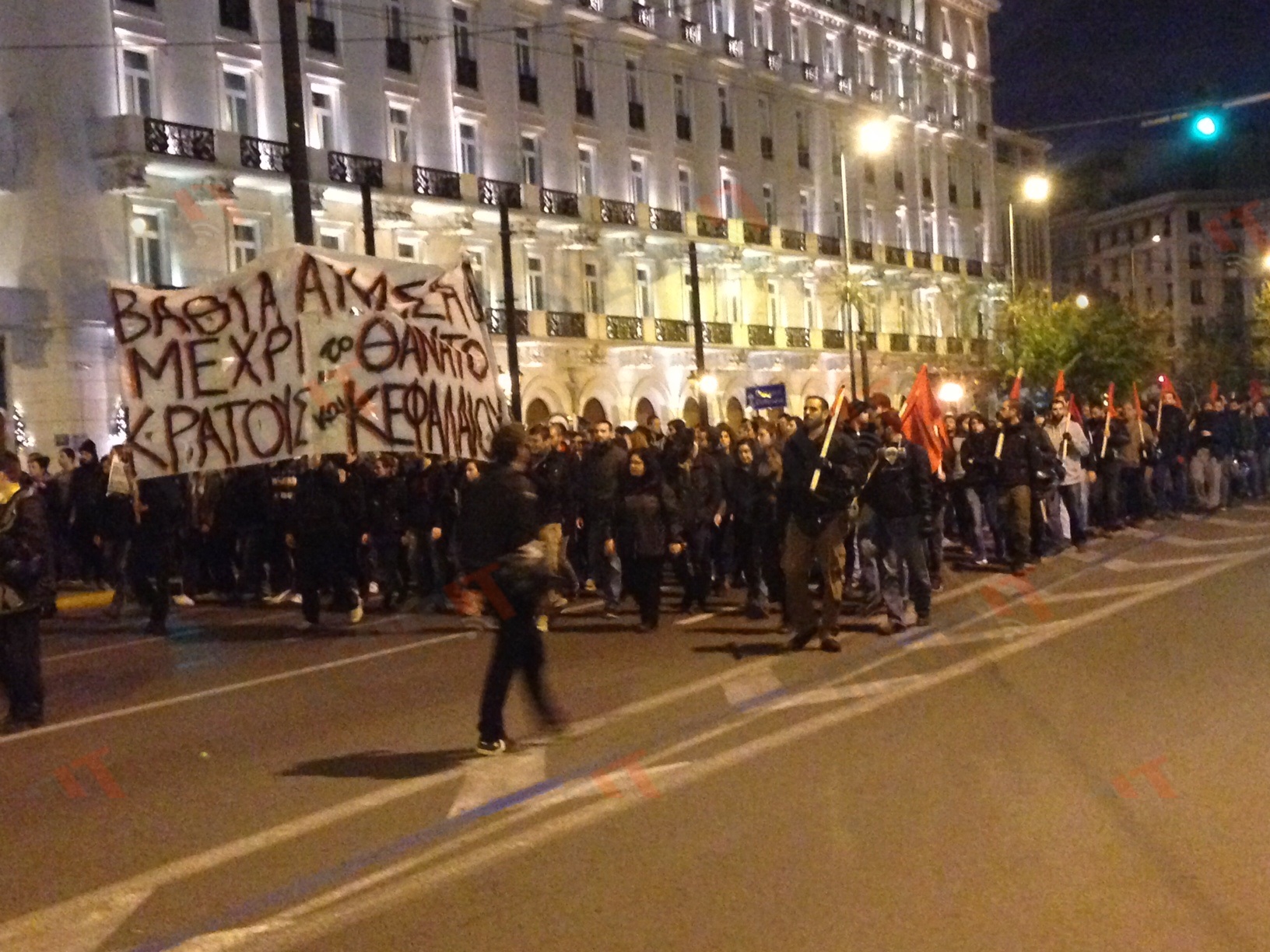 Στο Σύνταγμα και αντιεξουσιαστές από την κατάληψη της ΓΣΕΕ