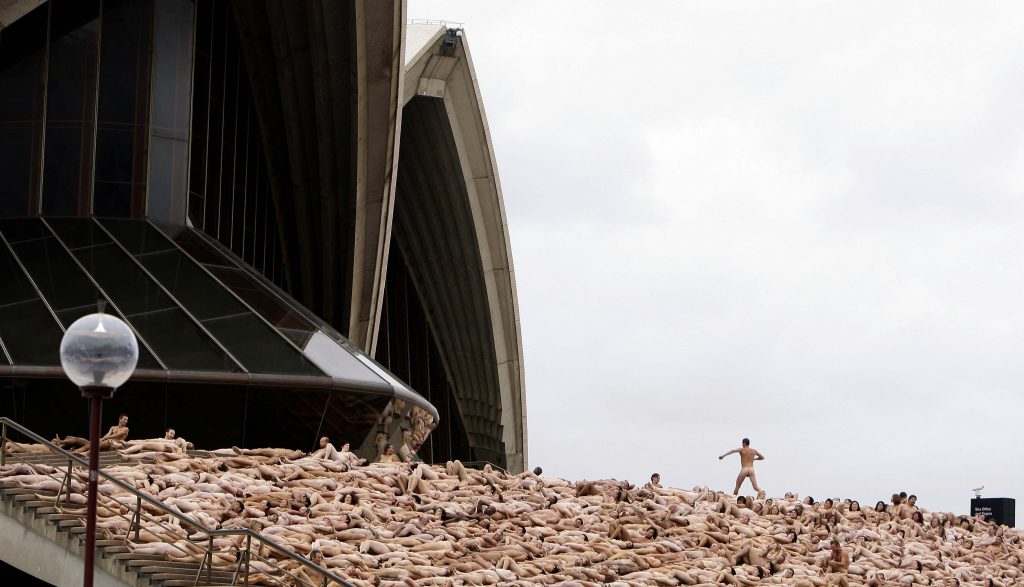 Πάνω από 5.000 Αυστραλοί γδύθηκαν και πόζαραν μπροστά στη διάσημη Όπερα του Σίδνευ για χάρη του αμερικανού φωτογράφου – γνωστού για τις μαζικές γυμνές φωτογραφίσεις που κανει σε δημόσια μέρη – Σπένσερ Τούνικ. Η εκδήλωση διοργανώθηκε από ομάδες υποστήριξης των δικαιωμάτων των ομοφυλοφίλων.