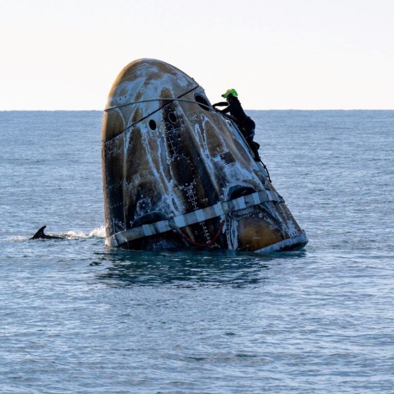 Ανάμεσα σε όσους ειδικούς έσπευσαν να υποδεχτεί το δίδυμο – η κάψουλα της SpaceX που τους έφερε πίσω μαζί με τον αμερικανό αστροναύτη Νικ Χέιγκ και τον ρώσο κοσμοναύτη Αλεξάντρ Γκορμπούνοφ «προσγειώθηκε» στις ακτές της Φλόριντα λίγο πριν από τις 6 το απόγευμα της Τρίτης (18.03.2025) (τα μεσάνυχτα ώρα Ελλάδας)- ήταν και ένα κοπάδι με δελφίνια.