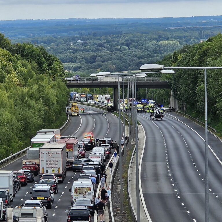 Η υπηρεσία National Highways ανακοίνωσε: «Ο αυτοκινητόδρομος M20 στο Κεντ είναι κλειστός και στις δύο κατευθύνσεις μεταξύ της διασταύρωσης 3 (Addington) και της διασταύρωσης 1 (Swanley) μετά από σύγκρουση που είχε ως αποτέλεσμα ένα όχημα να πέσει από μια υπερυψωμένη γέφυρα».
