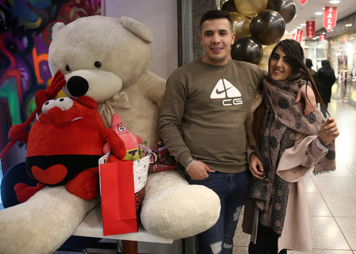 Κατακόκκινα μπαλόνια σε σχήμα καρδιάς, αρκουδάκια με ερωτευμένο ύφος, μπουκέτα με λουλούδια: οι κάτοικοι της Τεχεράνης κάνουν τα τελευταία ψώνια τους για τη γιορτή του Αγίου Βαλεντίνου, η οποία είναι πολύ δημοφιλής στο Ιράν τα τελευταία χρόνια.