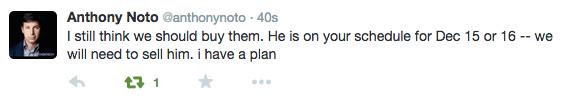 Ο Anthony Noto, επικεφαλής των οικονομικών υπηρεσιών έκανε tweet τα οικονομικά πλάνα της εταιρείας, πιστεύοντας πως στέλνει προσωπικό μήνυμα.