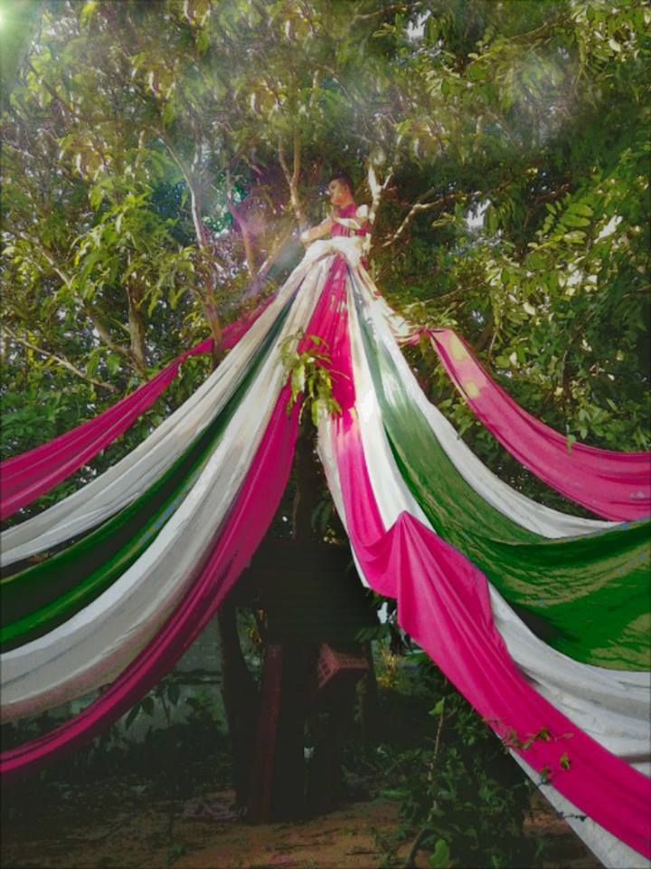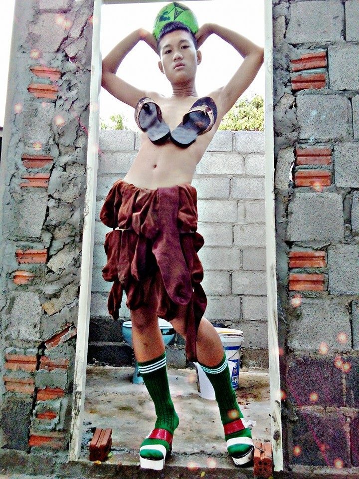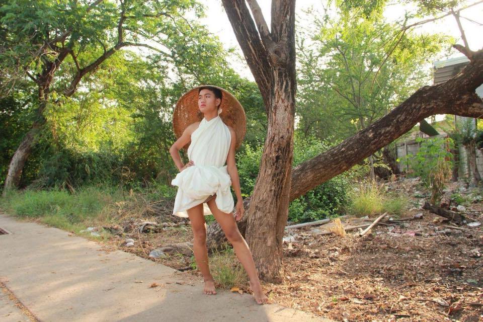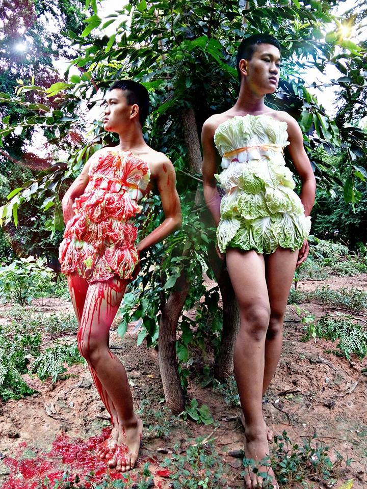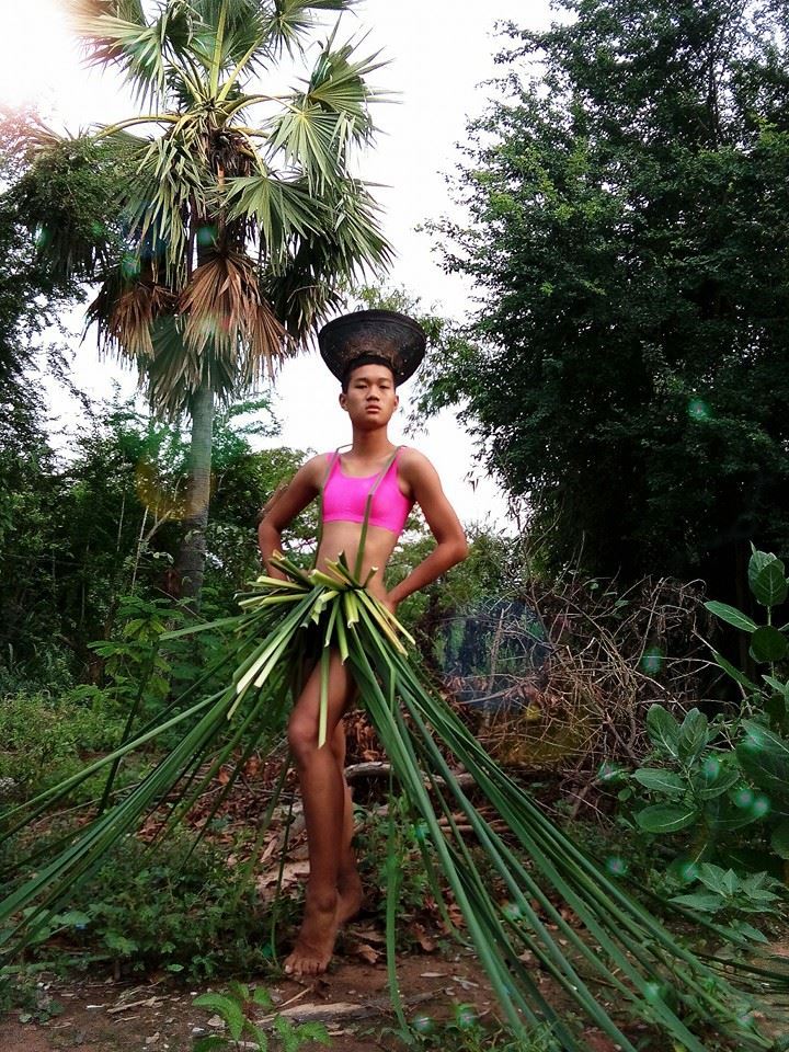 Χρησιμοποιεί στις ενδυματολογικές δημιουργίες του υλικά, όπως φυτά, μπαλόνια, ακόμη και κρεμάστρες και μετά φωτογραφίζεται ποζάροντας πάνω σε δέντρα, στέγες σπιτιών και μέσα σε ρυζοχώραφα.