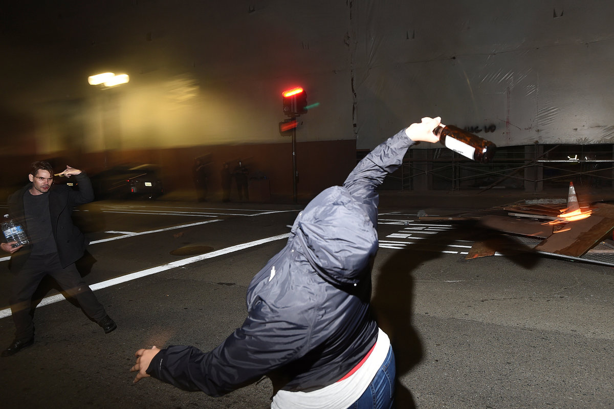 Νέα Υόρκη, Λος Άντζελες, Όκλαντ, Σικάγο, Ουάσινγκτον, Πενσιλβάνια, Φιλαδέλφεια, Βοστώνη, Όρεγκον, Όστιν. Είναι 10 από τις πόλεις των ΗΠΑ που έζησαν βράδυ αναβρασμού, με ογκώδεις διαδηλώσεις (κάποιες ειρηνικές, άλλες όχι), καταστροφές και συλλήψεις. Πλακάτ που εμφανίζουν τον νέο πρόεδρο ως γουρούνι, τον αποκαλούν ρατσιστή (είναι…), τον παρομοιάζουν με τον Χίτλερ, του λένε να πάει να… .