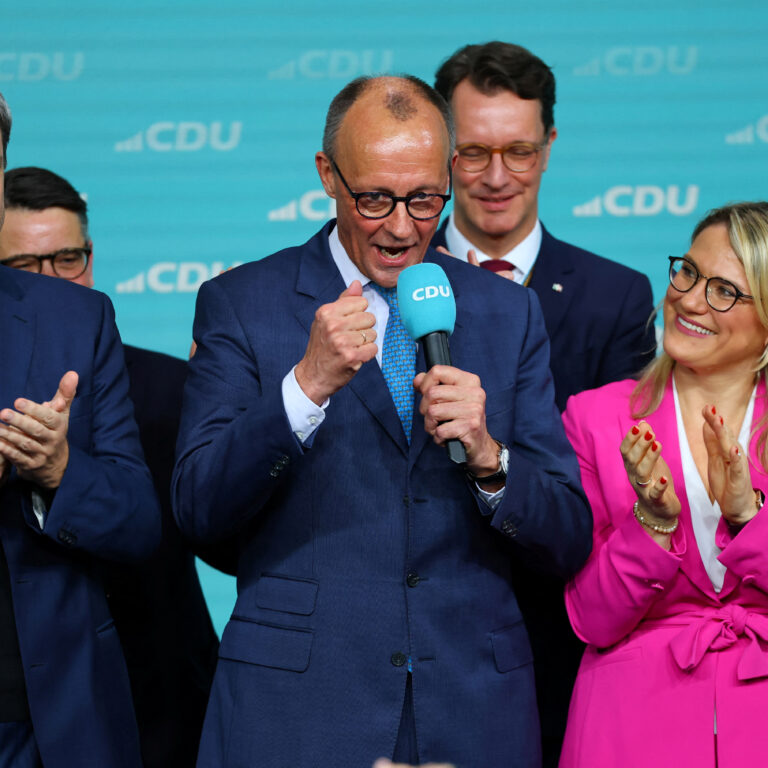Καταχειροκροτούμενος ο επικεφαλής των Χριστιανοδημοκρατών, Φρίντριχ Μερτς, δήλωσε: «Εμείς έχουμε κερδίσει αυτές τις εκλογές. Κερδίσαμε τις εκλογές γιατί συνεργαστήκαμε και προετοιμαστήκαμε πολύ καλά και είμαστε έτοιμοι να αναλάβουμε τη συγκυβέρνηση. Λέω στους εκλογείς μας, ότι τους ευχαριστώ πολύ για την εμπιστοσύνη. Γνωρίζω την ευθύνη και την αποστολή μου. Ξέρω ότι τα πράγματα δε θα είναι εύκολα. Εκφράζω σεβασμό για τους ανταγωνιστές. Είχαμε σκληρό προεκλογικό αγώνα, που όμως έγινε σωστά για τα μεγάλα θέματα όπως η μετανάστευση. Γρήγορα θα φτιάξουμε μια κυβέρνηση για να δραστηριοποιηθεί στη Γερμανία γιατί ο κόσμος εκεί έξω δεν περιμένει εμάς, πρέπει γρήγορα να γίνουμε κυβέρνηση, μια κυβέρνηση αξιόπιστη. Έχουμε την ευθύνη και θα το πράξουμε».