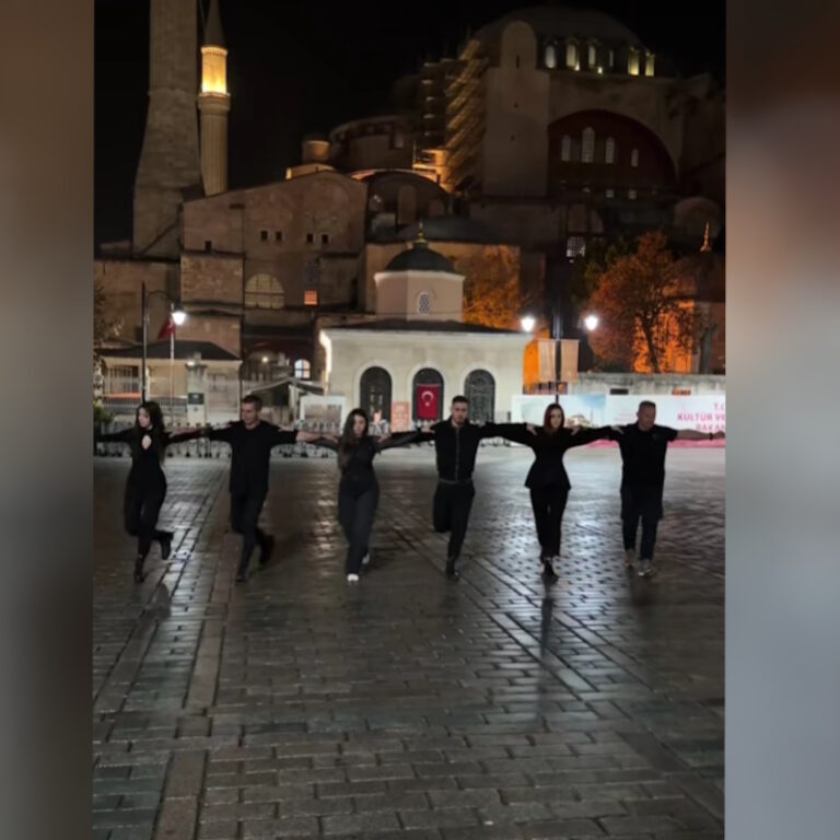 Οι 6 Έλληνες, 3 άνδρες και 3 γυναίκες συγκεντρώθηκαν στην πλατεία κάτω από την Αγία Σοφία και χόρεψαν με περηφάνεια το «Τ’ άγια χώματα της πόλης» του Στράτου Διονύσιου, έναν ύμνο για την Κωνσταντινούπολη και για τους Έλληνες που μεγάλωσαν και έζησαν εκεί.