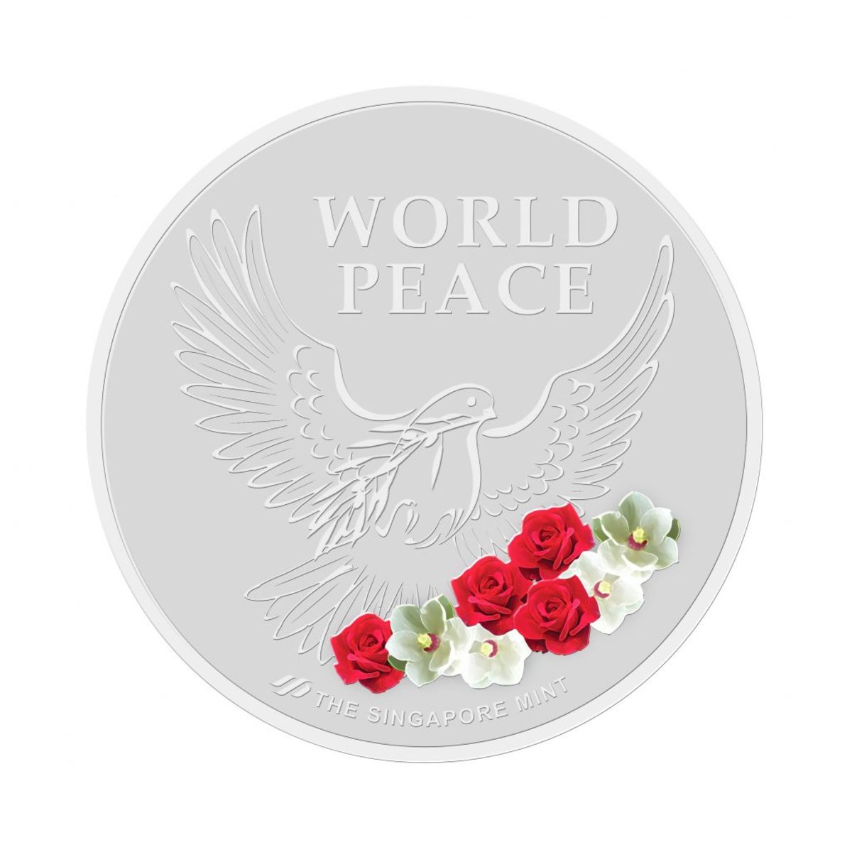 Η επιγραφή “Παγκόσμια Ειρήνη” είναι χαραγμένη με μεγάλα γράμματα στη μια από τις πλευρές του μενταγιόν. Η φράση συνοδεύεται από ένα περιστέρι κι ένα κλάδο ελιάς, τα σύμβολα της ειρήνης. Από κάτω, είναι “μπλεγμένα” ένα τριαντάφυλλο και μια μανόλια, τα παραδοσιακά άνθη των δυο κρατών.