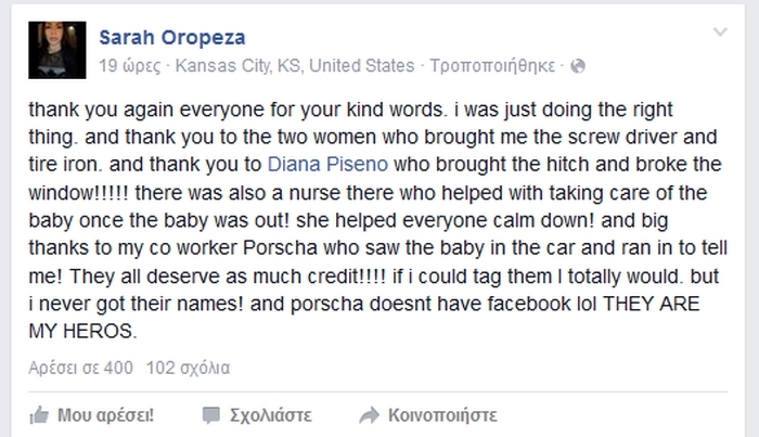 “Απλά προσευχόμουν να σπάσει. Θα πέθαινε. Το γυαλί τελικά ράγισε και καταφέραμε να τραβήξουμε το 2χρονο κοριτσάκι από το καυτό αυτοκίνητο. Τα παπούτσια της ήταν βρεγμένα, οι κάλτσες της ήταν βρεγμένες. Ήταν μούσκεμα στον ιδρώτα. Άρχισα να κλαίω”.