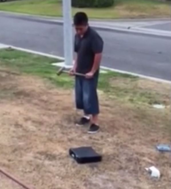 “Δεν φταίω που δεν πήρα καλούς βαθμούς” ακούγεται να λέει ο πιτσιρικάς ενώ διαλύει το Xbox του με βαριοπούλα.