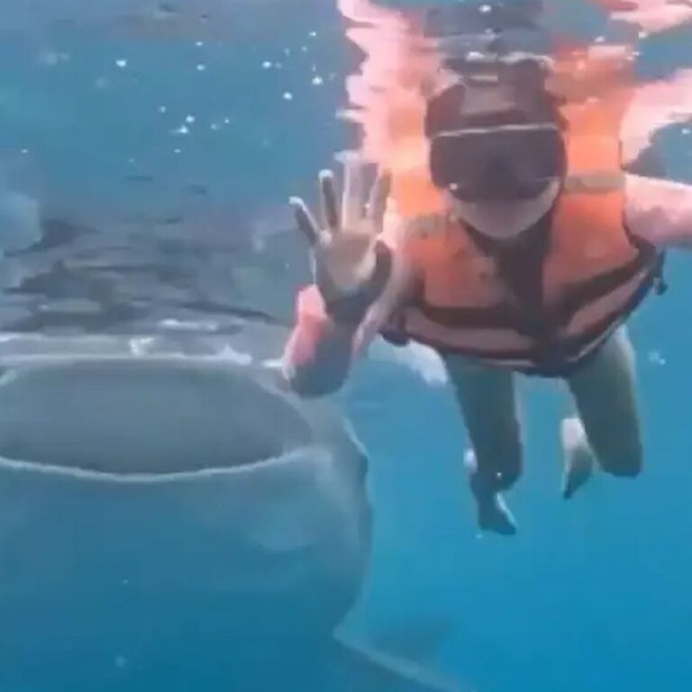 Το γιγάντιο θαλάσσιο πλάσμα άγγιξε απαλά το χέρι της ανυποψίαστης κολυμβήτριας και στη συνέχεια την προσπέρασε.