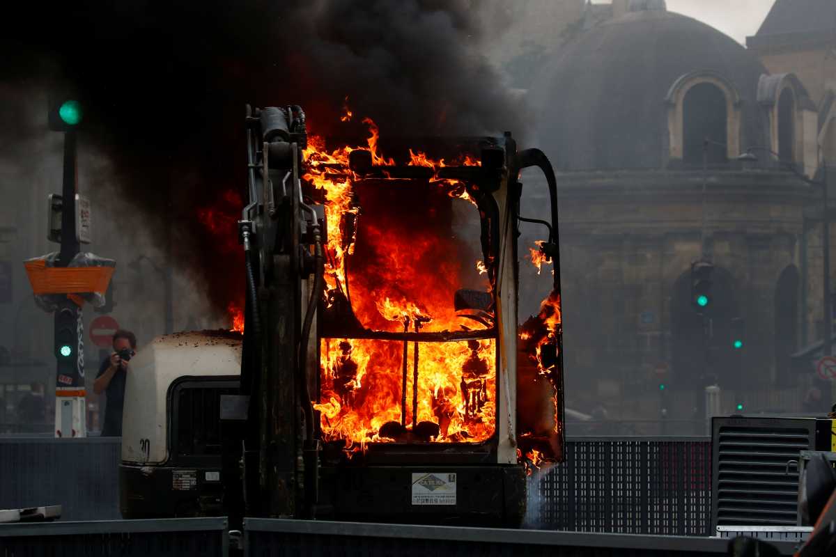 Η αστυνομία επενέβη λίγο αφότου δεκάδες διαδηλωτές προσπάθησαν να κάνουν πορεία σε μια λεωφόρο, στο κέντρο του Παρισιού, χωρίς να έχουν λάβει άδεια από τις τοπικές αρχές. Ορισμένοι φορούσαν κονκάρδες με το σύνθημα «Όχι στο διαβατήριο υγείας».