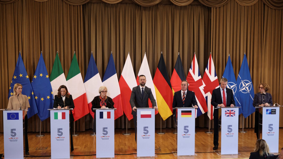 Οι πέντε αυτές χώρες, που έχουν διαμορφώσει το σχήμα «E5», με κοινό ανακοινωθέν, τονίζουν ότι θα αναλάβουν μια «μεγαλύτερη ευθύνη» για την ασφάλεια της Ευρώπης, ενισχύοντας παράλληλα την ευρωπαϊκή διάσταση του ΝΑΤΟ.