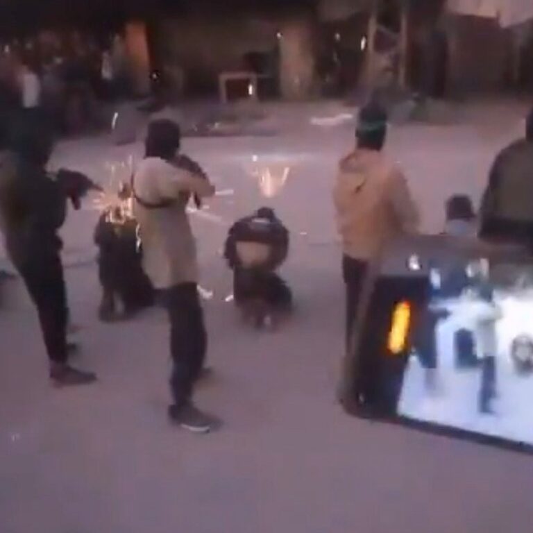 Το βίντεο, διάρκειας περίπου ενός λεπτού, δείχνει οκτώ κρατούμενους με δεμένα τα χέρια και καλυμμένα τα μάτια, να γονατίζουν σε μια πλατεία πριν εκτελεστούν από ενόπλους. Το μήνυμα που συνόδευε τη δημοσίευση ανέφερε: «Η Αντίσταση εκτελεί τη θανατική ποινή σε αρκετούς συνεργάτες και εγκληματίες».