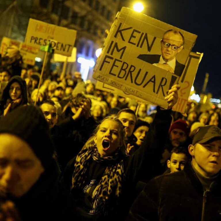 Οι χιλιάδες διαδηλωτές στο Βερολίνο φώναξαν συνθήματα και κατά του Φρίντριχ Μερτς, για το ενδεχόμενο μετεκλογικής συνεργασίας του Χριστιανοδημοκρατικού Κόμματος (CDU), του οποίου ηγείται, με την άκρα δεξιά της «Εναλλακτικής για τη Γερμανία» (AfD).