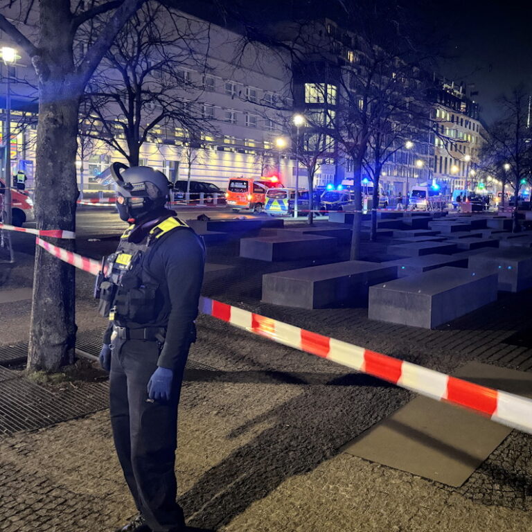 Η επίθεση πραγματοποιήθηκε χθες το απόγευμα στον δρόμο μεταξύ του Μνημείου για το Ολοκαύτωμα και της πρεσβείας των ΗΠΑ, κοντά στην Πύλη του Βρανδεμβούργου, με τον δράστη να μαχαιρώνει το θύμα στον λαιμό και να τρέπεται σε φυγή.