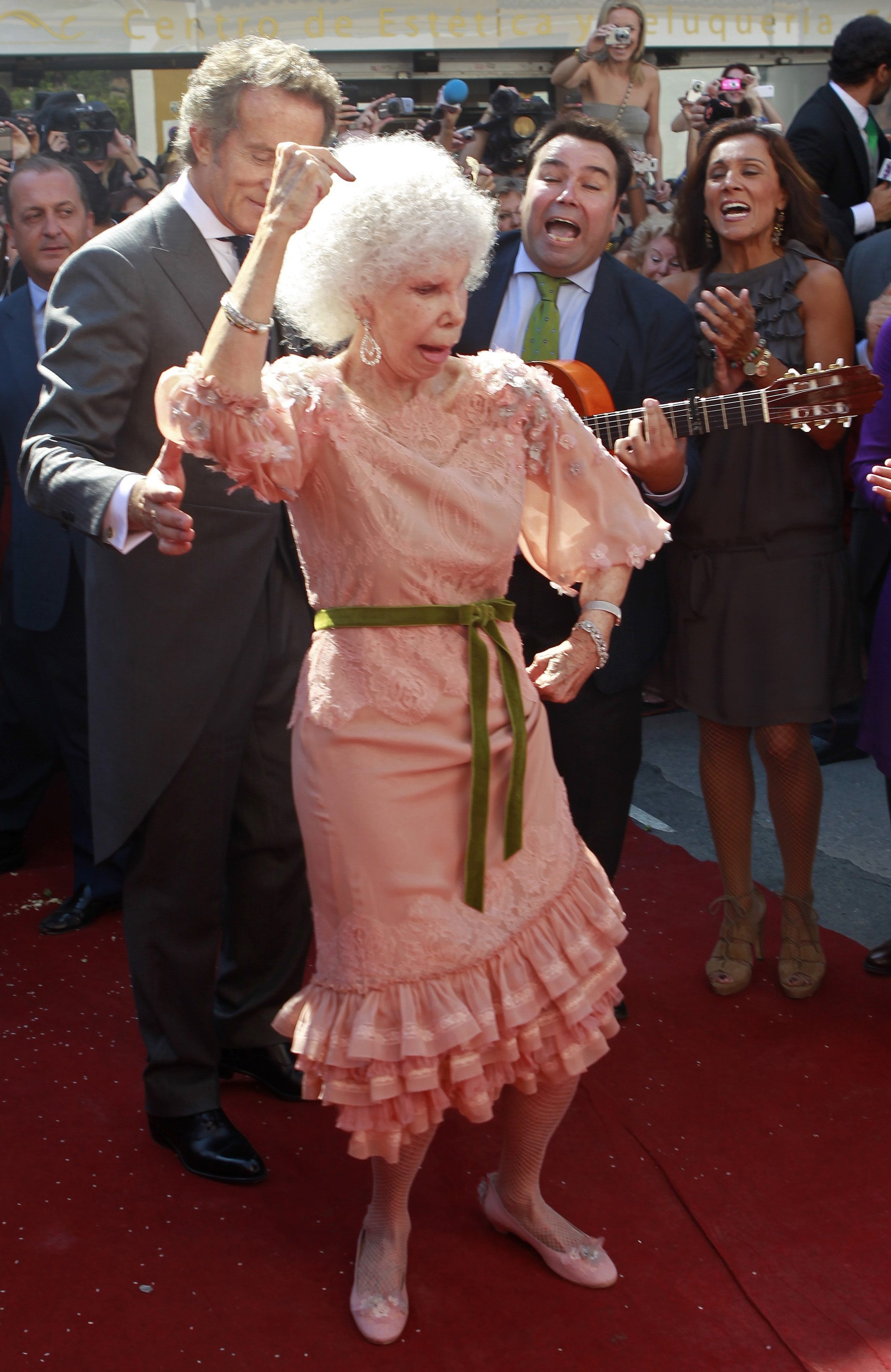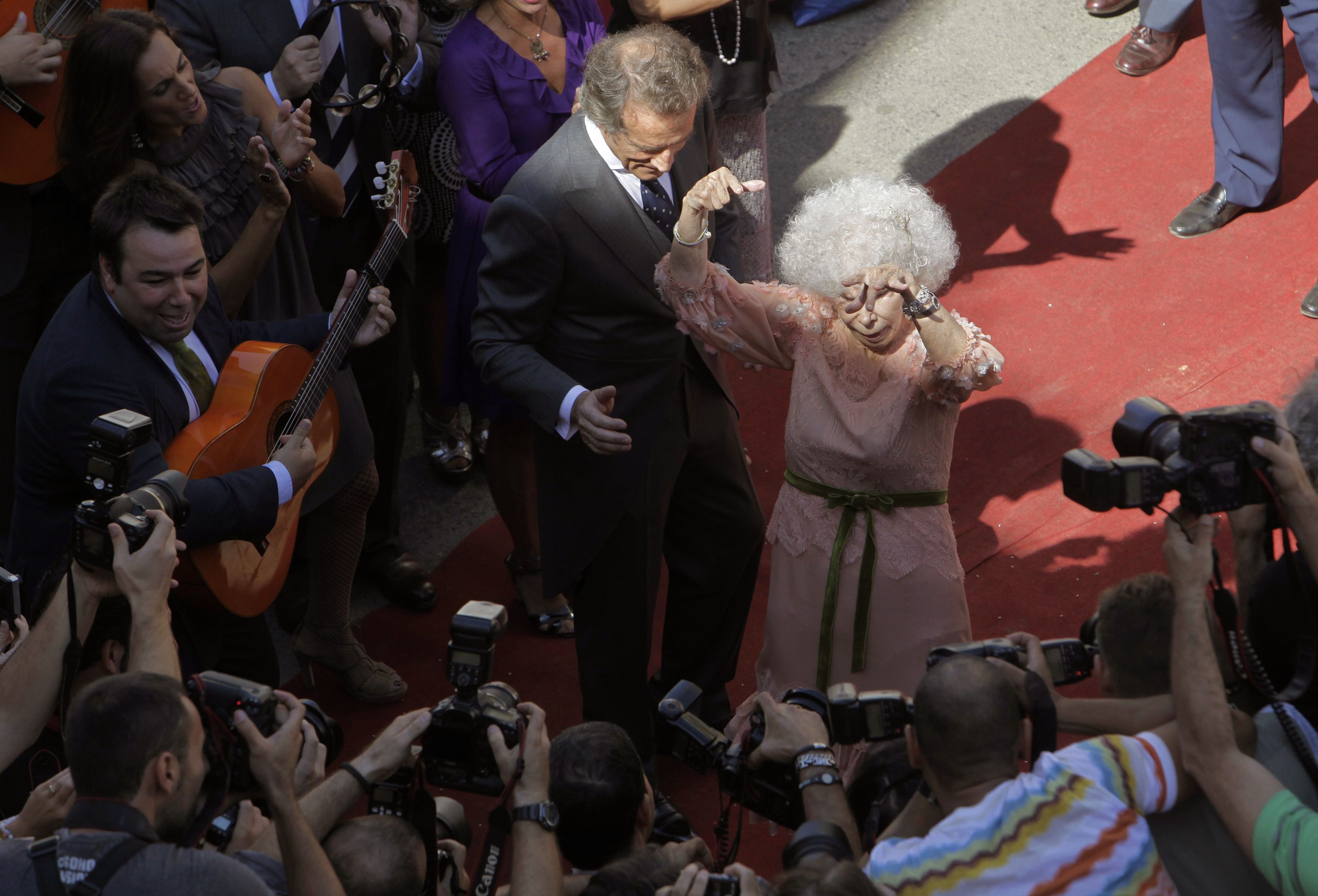 ‘Εμεινε ξυπόλυτη λοιπόν για να χορέψει φλαμένγκο! Κανείς δεν μπορεί να κατηγορήσει τον ενθουσιασμό της 85χρονης Δούκισσας αφού σήμερα ήταν η μέρα του γάμου της…