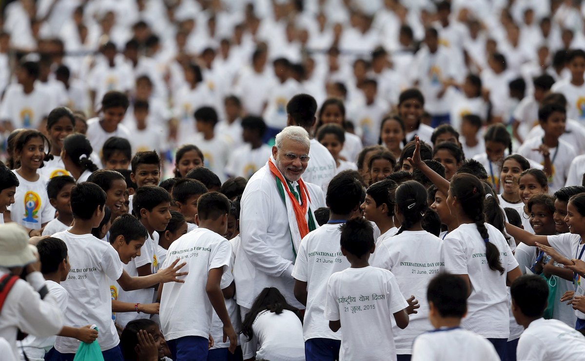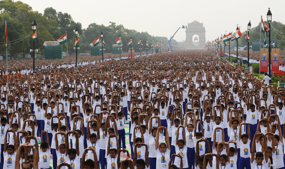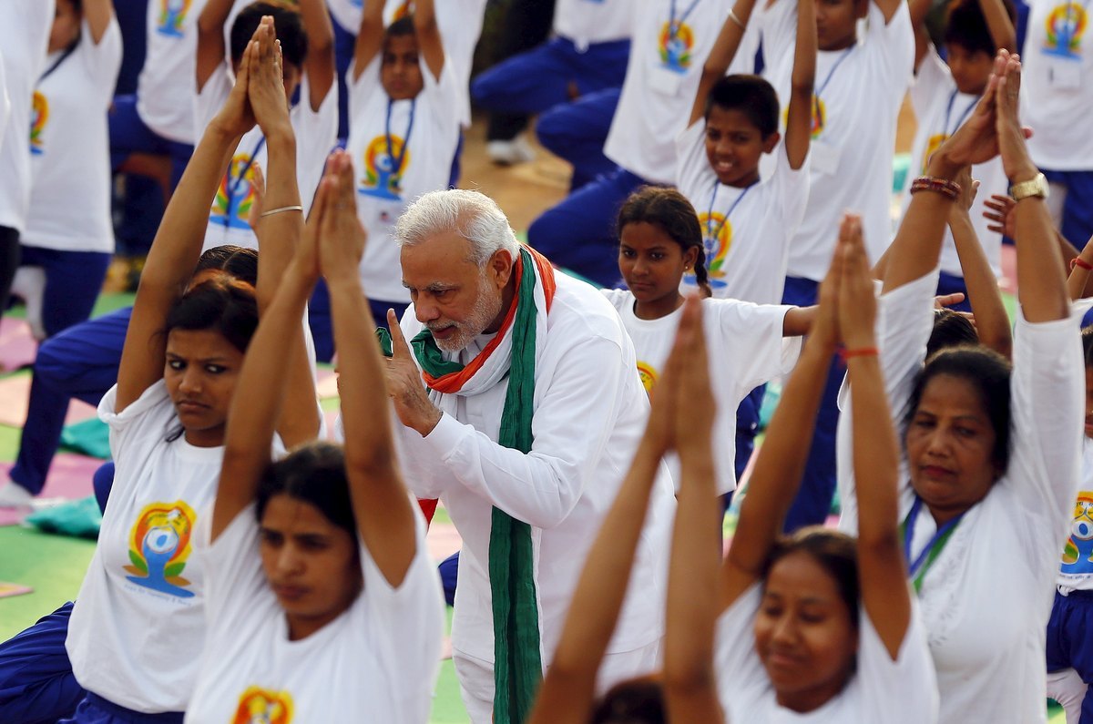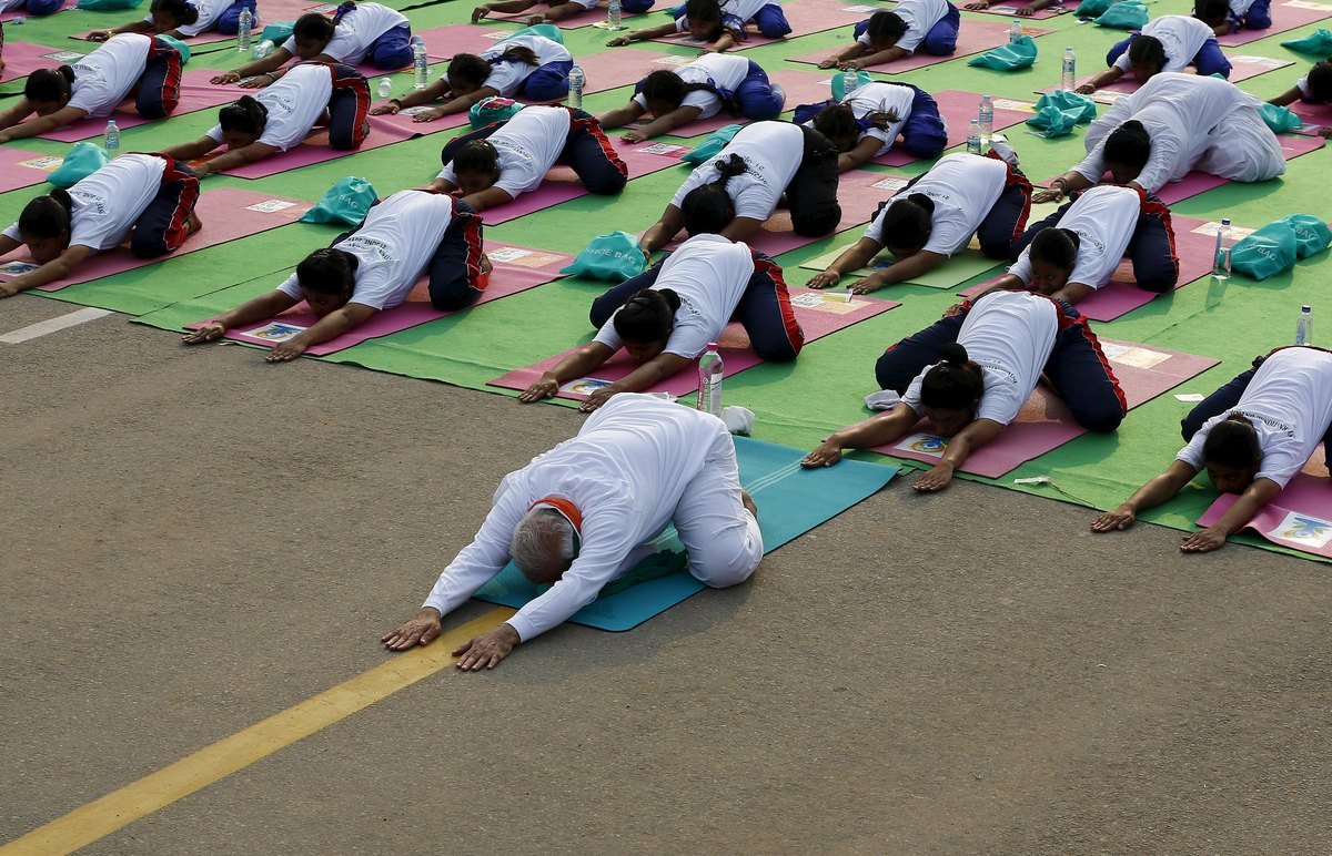 Ο Ινδός πρωθυπουργός, ο οποίος θέλει να ενισχύσει την θέση της γιόγκα καθιστώντας την κεντρικό στοιχείο του ινδικού πολιτισμού, τέθηκε επικεφαλής μιας συνεδρίας γιόγκα στο Νέο Δελχί, η οποία έχει προσελκύσει περισσότερους από 35.000 ανθρώπους, μεταξύ των οποίων πολλοί δημόσιοι υπάλληλοι, φοιτητές και στρατιώτες, που είναι λάτρεις των asanas (πόζες ή στάσεις στη γιόγκα).