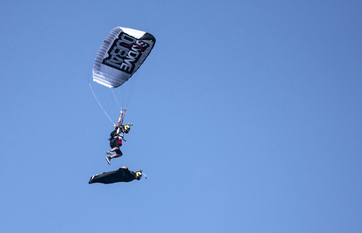Οι δύο λάτρεις των σπορ και της αδρεναλίνης είχαν πετάξει από διαφορετικές τοποθεσίες και ενώθηκαν στον αέρα στην επαρχία Χουνάν, στην Κίνα, στις 11 Αυγούστου.