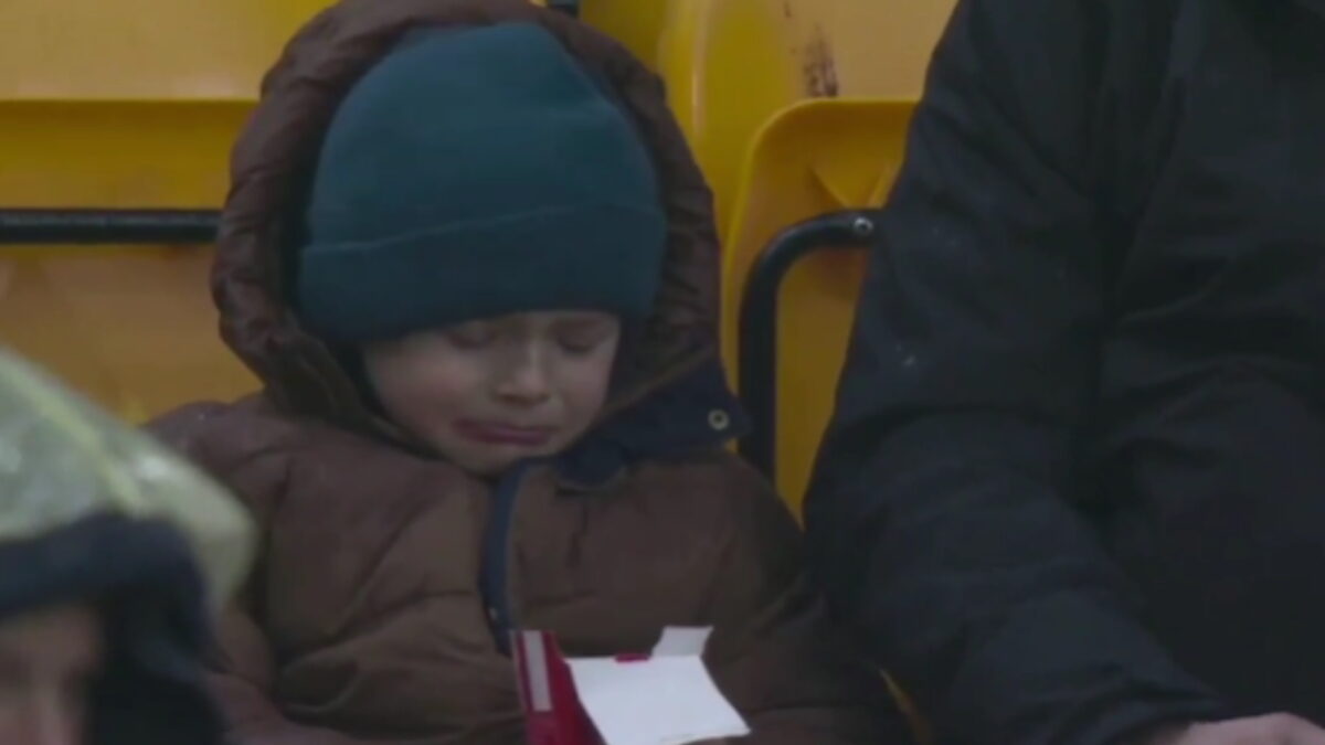 Αυτή την εκνευριστική στιγμή έζησε ένας μικρός φαν σε έναν αγώνα ποδοσφαίρου όταν πιθανότατα ο μπαμπάς του τού έκλεψε την αγαπημένη του κοτομπουκιά.