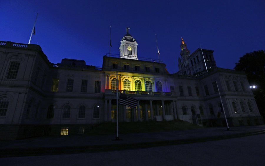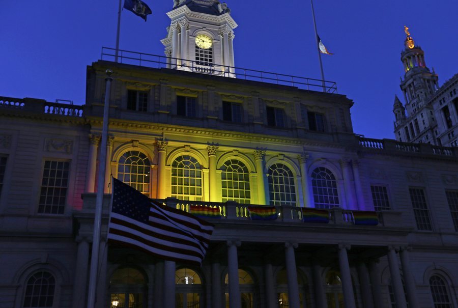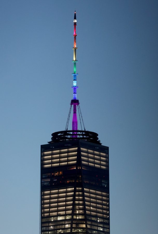 Άλλα κτίρια επέλεξαν να τιμήσουν αλλιώς τη μνήμη των θυμάτων του μακελάρη Ομάρ Ματόν. Η κεραία του One World Trade Center φωτίστηκε στα χρώματα του ουράνιου τόξου, όπως και η πρόσοψη του δημαρχείου της Νέας Υόρκης.