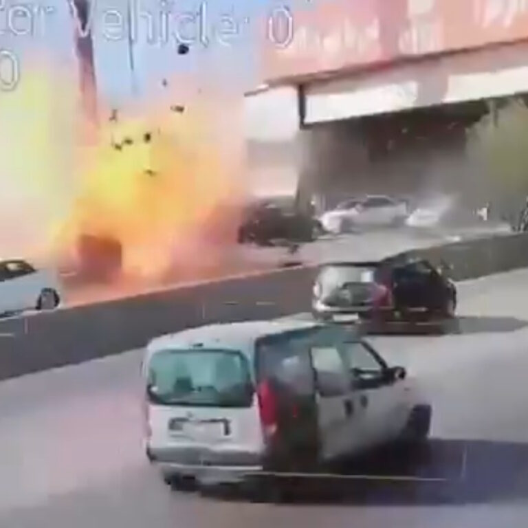 The moment an Israeli drone strike bombed a car on the Khalde highway, near Beirut, Lebanon as shown by surveillance cameras.
