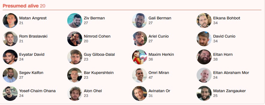 Αυτοί είναι οι 20 όμηροι που παραμένουν ζωντανοί και αναμένεται να παραδοθούν σήμερα στο Ισραήλ.