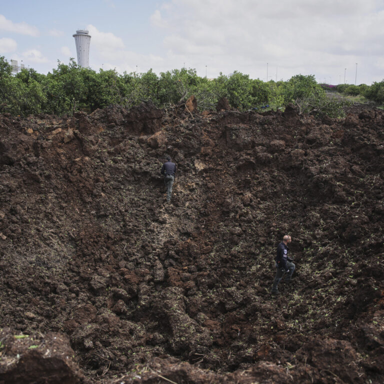 Υψηλόβαθμος διοικητής της ισραηλινής αστυνομίας, ο Γιαΐρ Χεζρόνι, έδειξε στους δημοσιογράφους έναν κρατήρα που προκλήθηκε από την πρόσκρουση του πυραύλου, ο οποίος όπως δήλωσαν οι αρχές του αεροδρομίου έπεσε δίπλα σε έναν δρόμο κοντά σε χώρο στάθμευσης του τερματικού σταθμού 3.