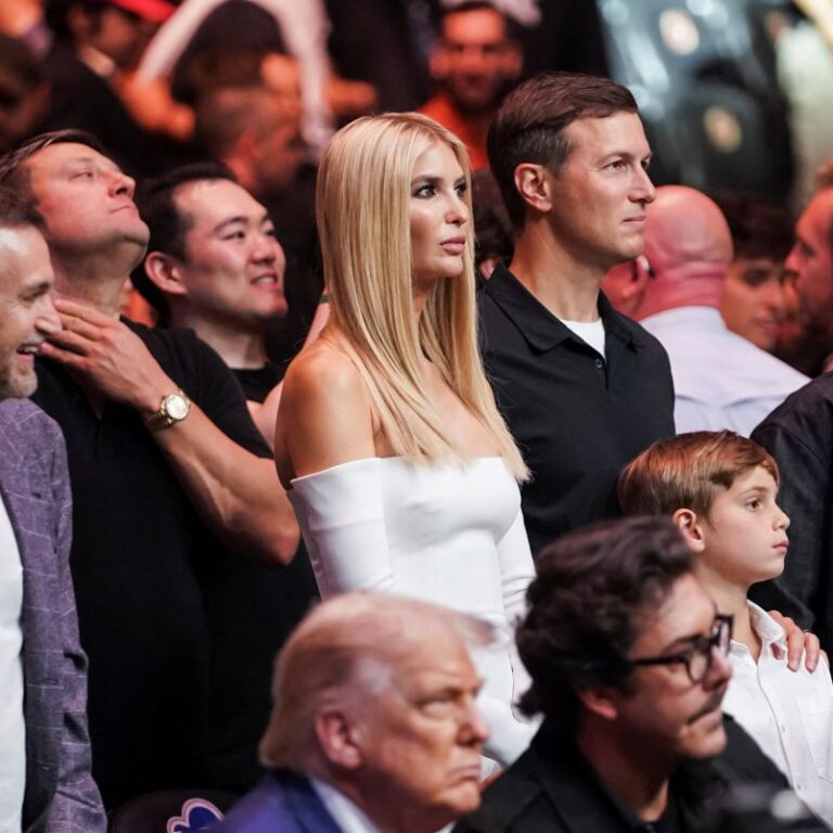 Αρχικά, η οικογένεια της Ιβάνκα Τραμπ – η ίδια, ο 44χρονος σύζυγός της, Τζάρεντ Κούσνερ, η 13χρονη Αραμπέλα Ρόουζ και ο 11χρονος Τζόζεφ Φρέντερικ, πόζαραν έξω από το σπίτι τους πριν να παρακολουθήσουν τον αγώνα UFC.