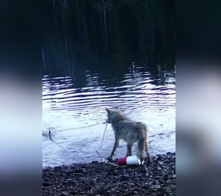Οι εικόνες άφησαν άφωνους τους βιολόγους. Στη δυτική πλευρά του Καναδά, μια λύκαινα καταγράφηκε να πιάνει με τα δόντια της το σχοινί μιας βυθισμένης παγίδας για καβούρια, να την ανεβάζει μέχρι την ακτή και στη συνέχεια να αφαιρεί ήρεμα το μικρό δοχείο που περιείχε το δόλωμα.