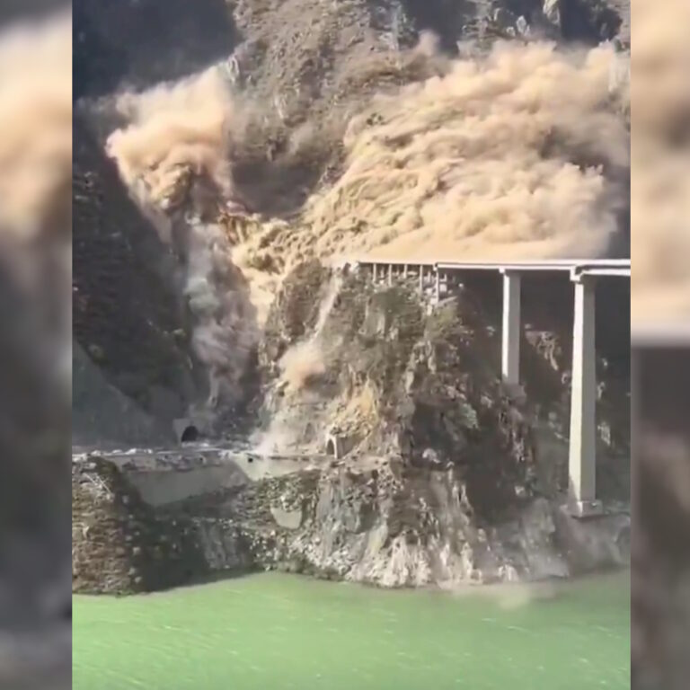 Συγκλονιστικές εικόνες και βίντεο από τη στιγμή των κατολισθήσεων κάνουν το γύρο του διαδικτύου, με τα απομεινάρια της γέφυρας να γλιστρούν στο έδαφος και μεγάλα σύννεφα χώματος και σκόνης να αναδύονται