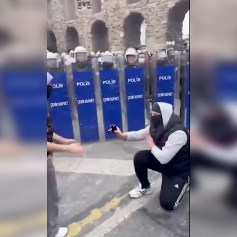 Turkish romance: in Istanbul, an anti-Erdoğan protester proposes to his girlfriend in front of a police cordon. pic.twitter.com/8g53WHNqjU