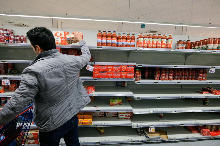 Στα σούπερ μάρκετ (όχι μόνο στο Μιλάνο, αλλά και σε άλλες περιοχές όπως το Παλέρμο στα νότια της χώρας) τα ράφια παραμένουν άδεια. Οι περισσότεροι απ’ όσους κυκλοφορούν στους δρόμους, φορούν προστατευτικές μάσκες, ενώ ειδικά συνεργεία απολυμαίνουν τους συρμούς των τρένων!