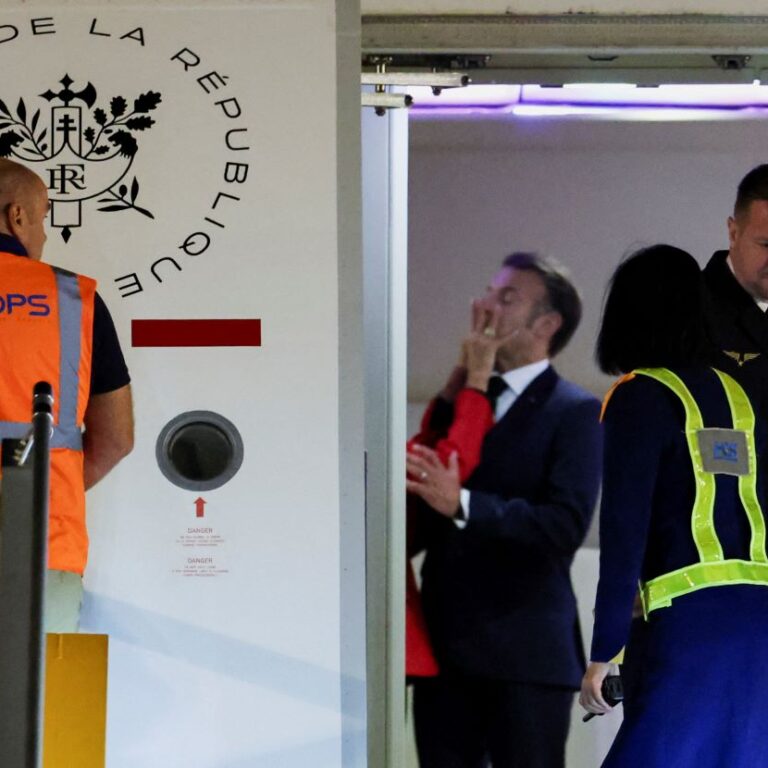 Ο Γάλλος ηγέτης φαίνεται έκπληκτος και γυρίζει να χαιρετήσει έξω, πριν το ζευγάρι κατέβει τις σκάλες του αεροσκάφους, όπου ο Μακρόν προσπαθεί να της πιάσει το χέρι καθώς περπατούν – αλλά εκείνη επιλέγει να κρατηθεί από το κιγκλίδωμα της σκάλας.