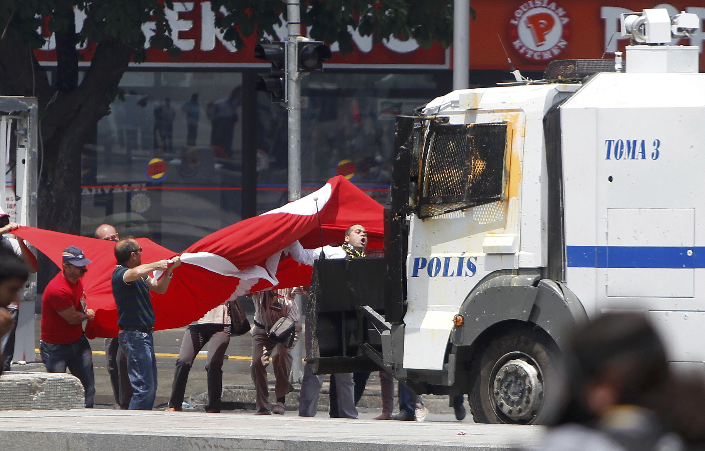 Φαίνεται πως η εντολή Ερντογάν είναι να καταστείλει η αστυνομία με κάθε τρόπο τις διαδηλώσεις τόσο στην Κωνσταντινούπολη και την πλατεία Ταξίμ όσο και στην Άγκυρα. Έτσι μεταφράζεται η βία των αστυνομικών αρχών το βράδυ του Σαββάτου, στην Κωνσταντινούπολη, όταν έγινε εισβολή στο ξενοδοχείο Divan, το οποίο οι διαδηλωτές είχαν μετατρέψει σε… νοσοκομείο.