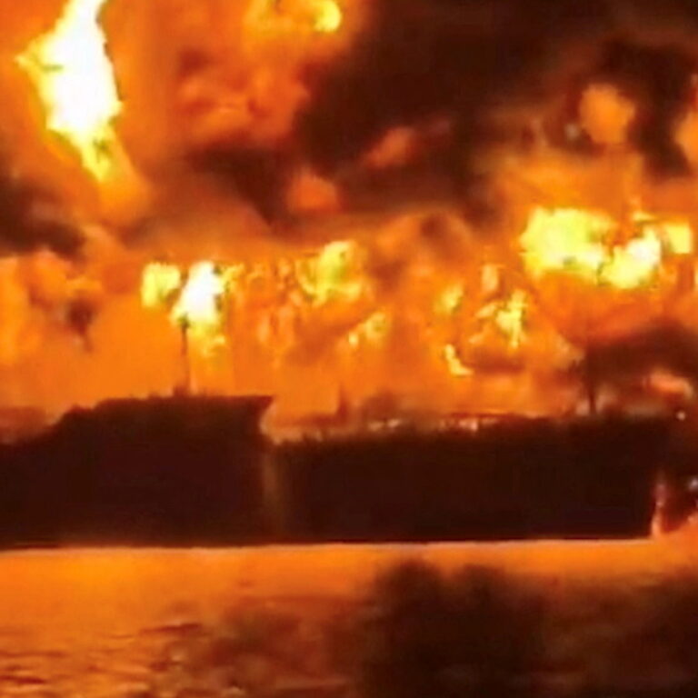 Πλάνα που επαλήθευσε το CNN δείχνουν τα δύο δεξαμενόπλοια να καίγονται, ενώ οι φλόγες επεκτείνονται και στα γύρω νερά — πιθανότατα εξαιτίας πετρελαιοκηλίδας. Δεδομένα παρακολούθησης των πλοίων υποδεικνύουν ότι ήταν αγκυροβολημένα πολύ κοντά το ένα στο άλλο τη στιγμή που ξέσπασε η φωτιά.